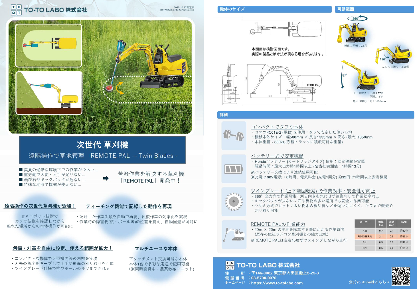 このたび、REMOTE PALシリーズ第2弾として、危険で作業者への負担が大きい草刈作業に着目して、「REMOTE PAL -Twin Blades-」の開発をスタートしました。
