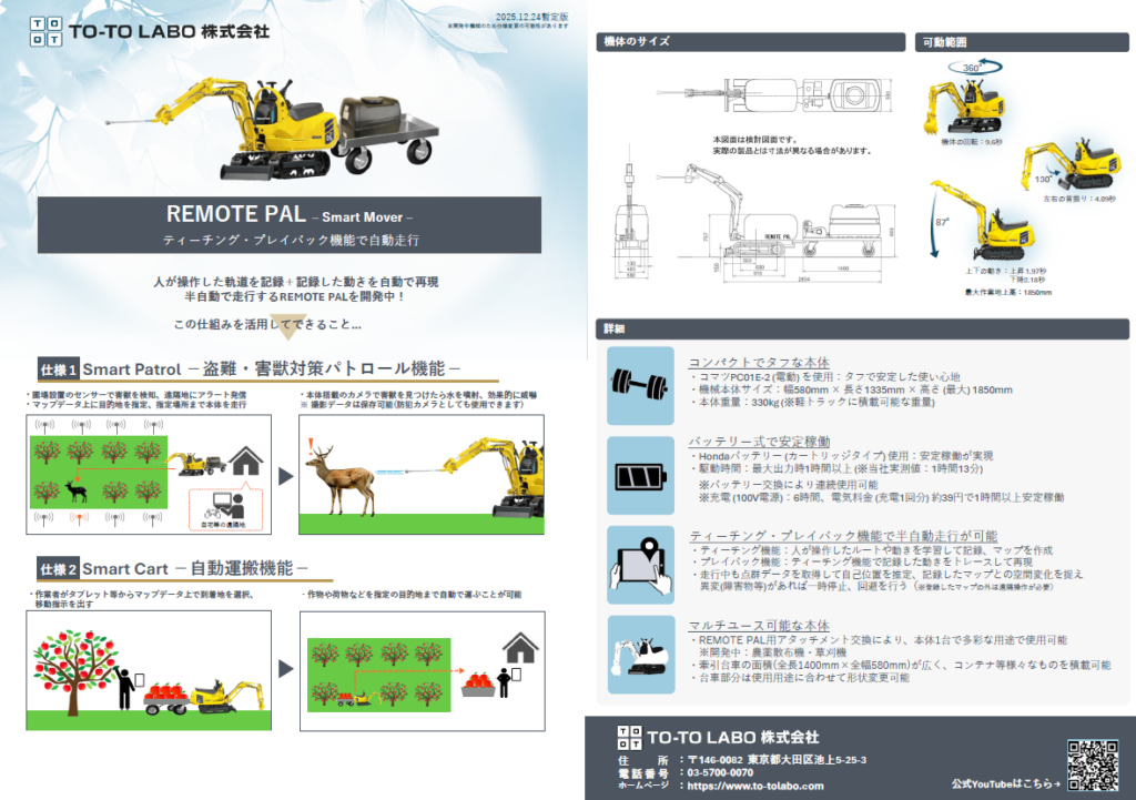 「REMOTE PAL-Smart Mover-」は人が操作したルートや軌道を記録し、記録した動きをトレースして再現することで自動走行します。